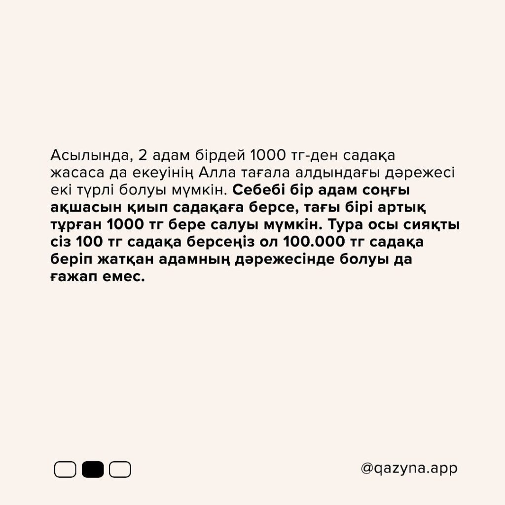 3 тг болсын садақа жасап, ақыреттік счетыңызды қазірден бастап толтырыңыз!